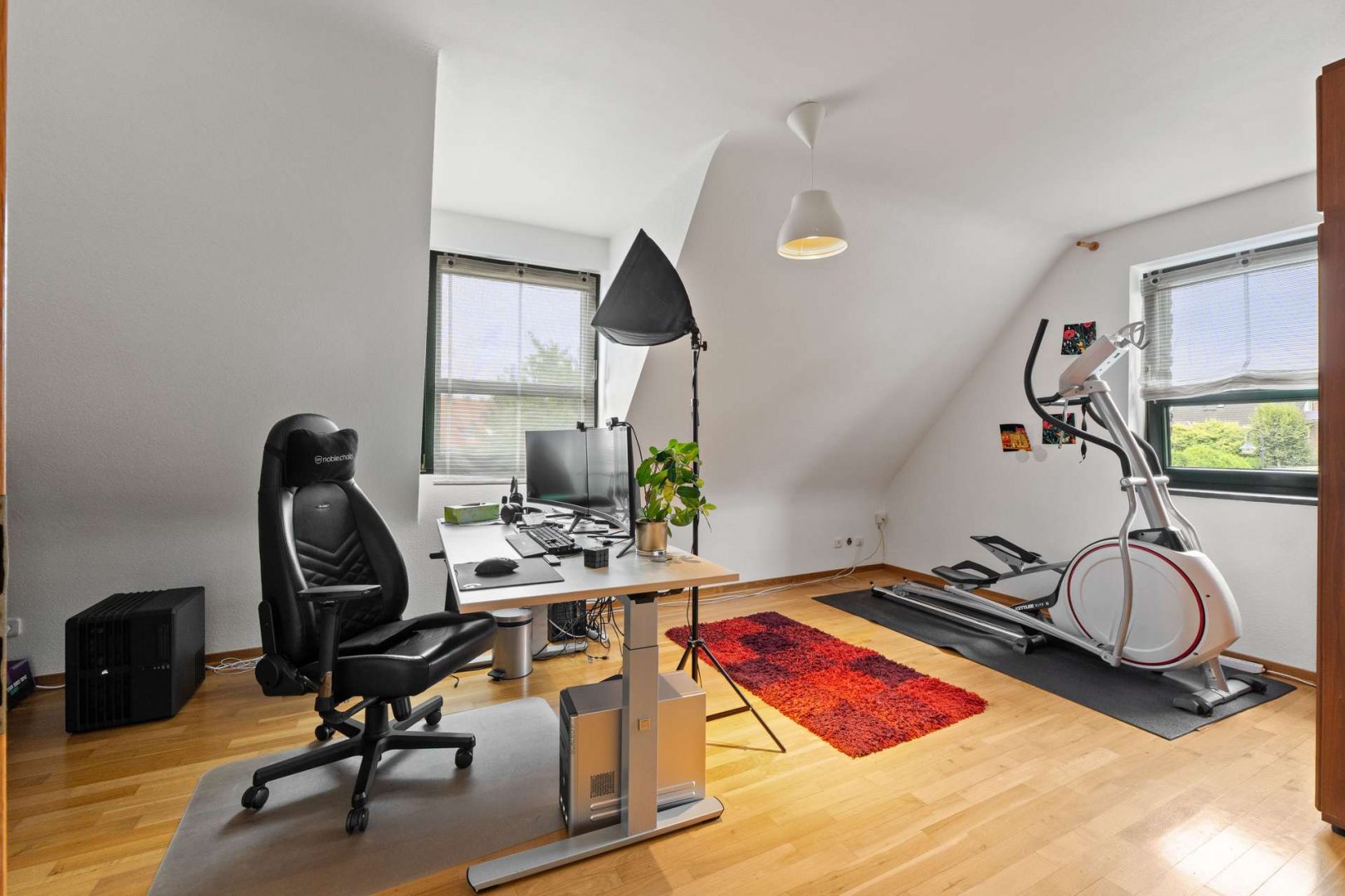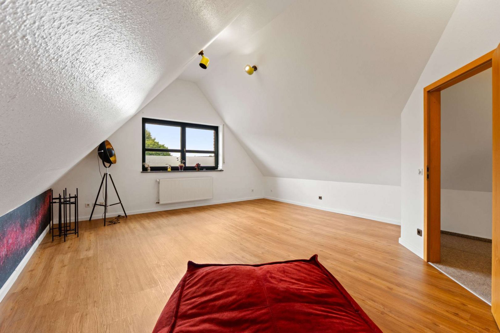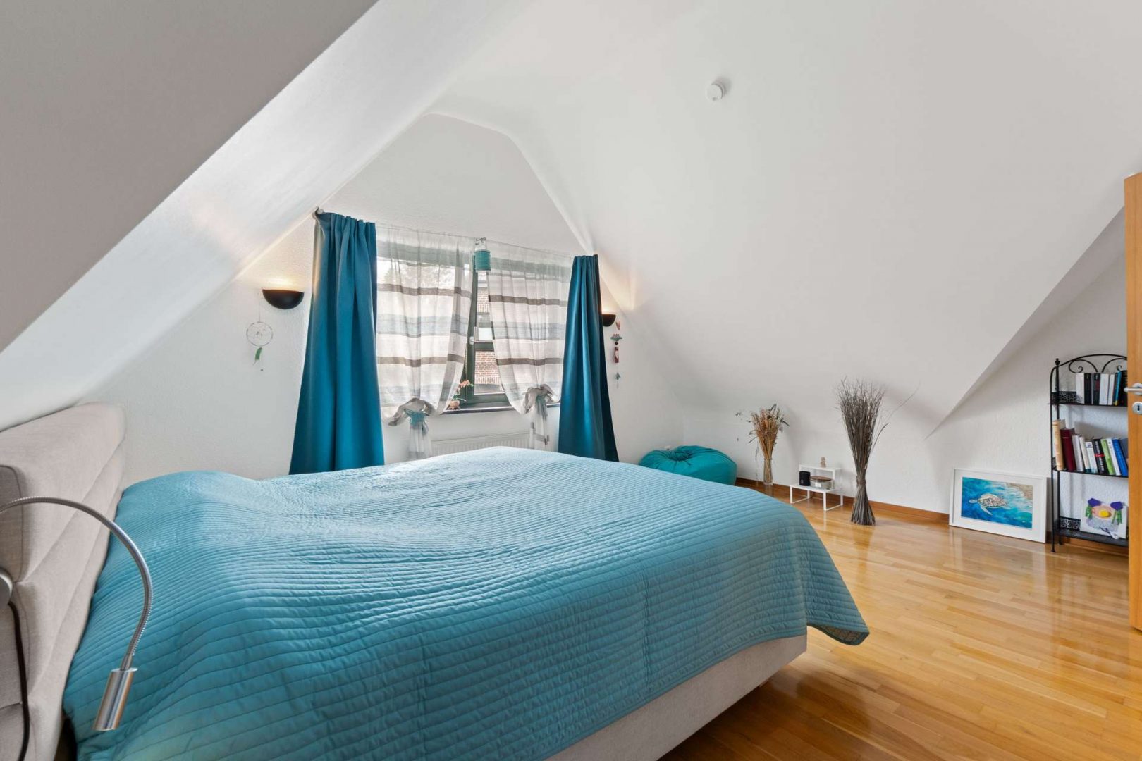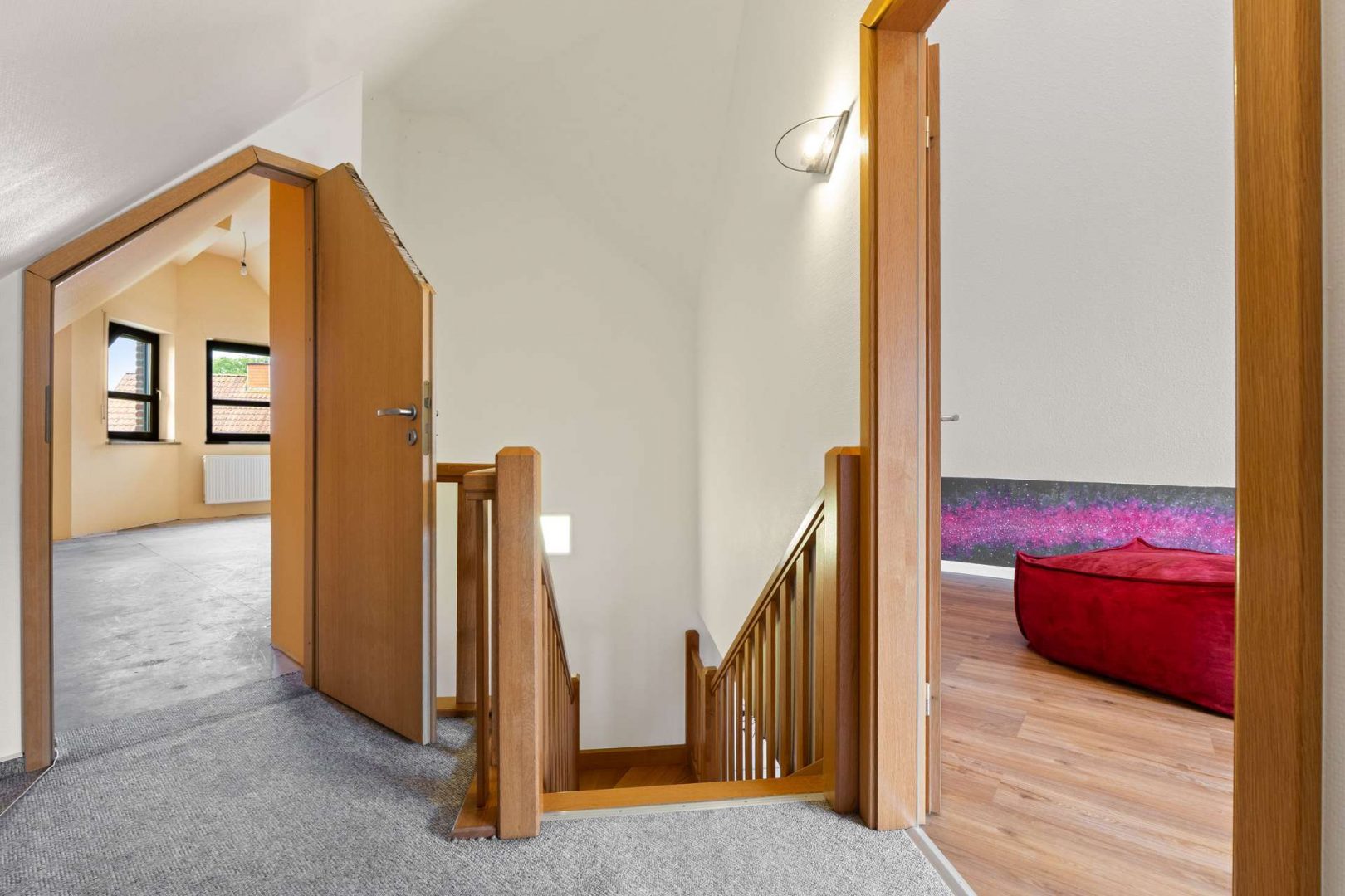 Das Grundstück umfasst 981 m² und bietet einen gepflegten Garten mit Teich und Bewässerungssystem. Die großzügige Doppelgarage wird durch zwei weitere Außenstellplätze ergänzt, sodass insgesamt ausreichend Parkmöglichkeiten zur Verfügung stehen. Im ausgebauten Spitzboden, der als Nutzfläche deklariert ist, wurde moderner Vinylboden verlegt, was zusätzlichen Raum für Hobbys, Lager oder Homeoffice bietet.