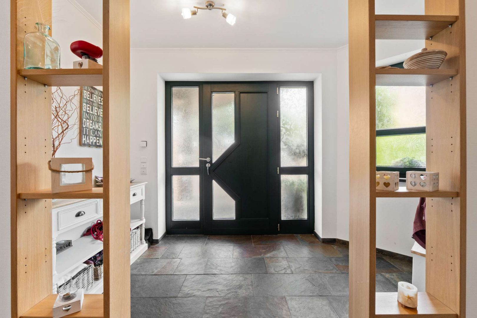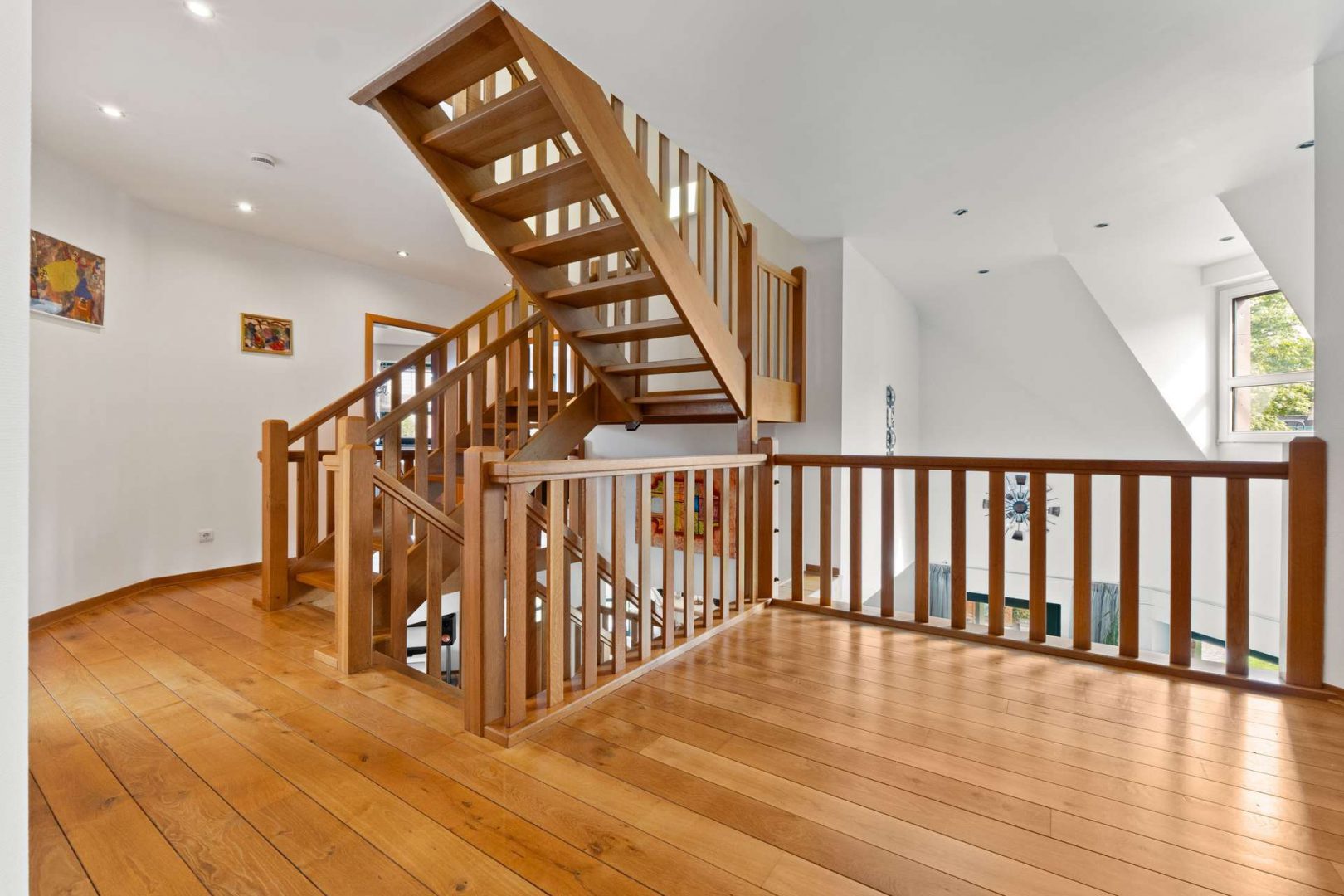 Bereits im Eingangsbereich wird deutlich, dass hier Wert auf Qualität gelegt wurde: Im Erdgeschoss sind hochwertige Natursteinböden und edle Holzdielen verlegt, die eine wohnliche und zugleich repräsentative Atmosphäre schaffen.